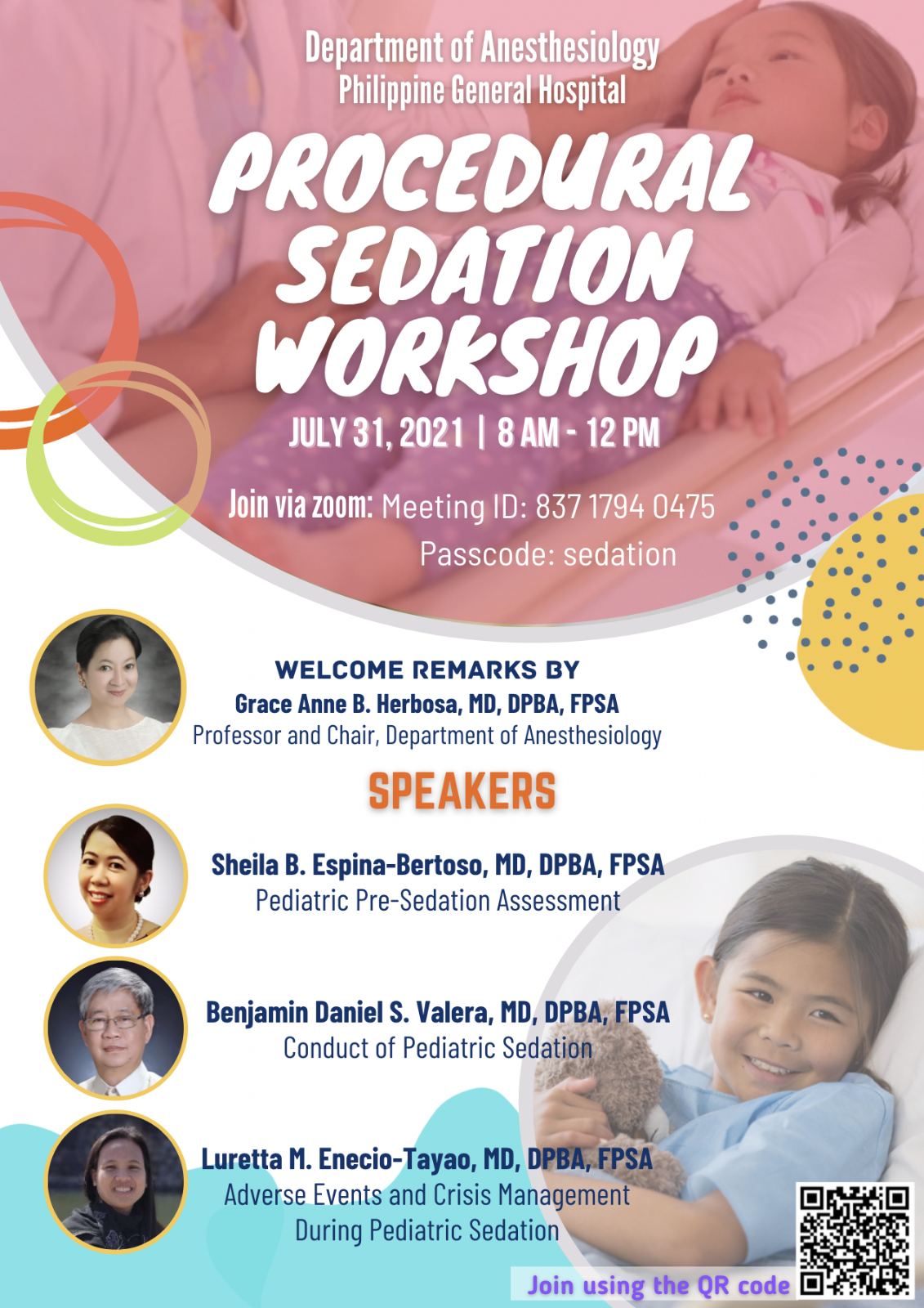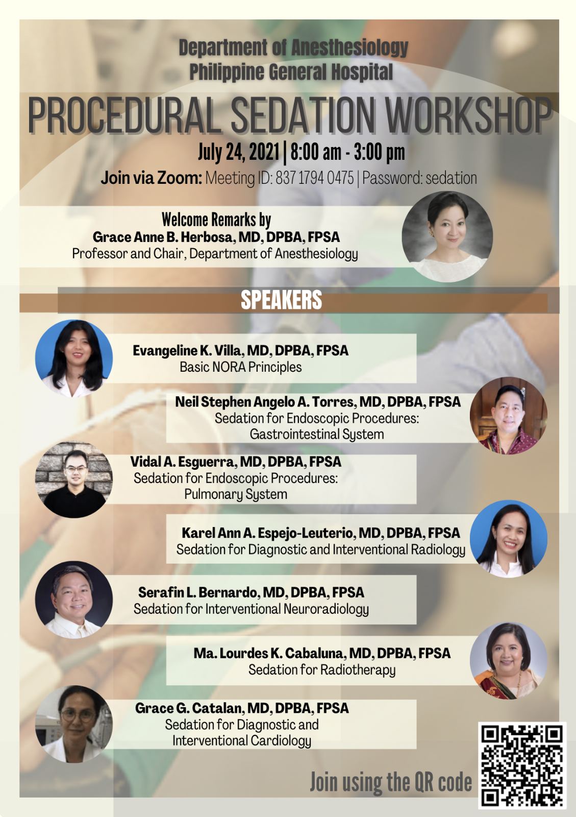 Sedation for patients needing diagnostic and therapeutic interventions has become a very important segment in the Services offered in Philippine General Hospital. The number of patients availing of Non-Operating Room Anesthesia (NORA) procedures has increased exponentially in the last few years.