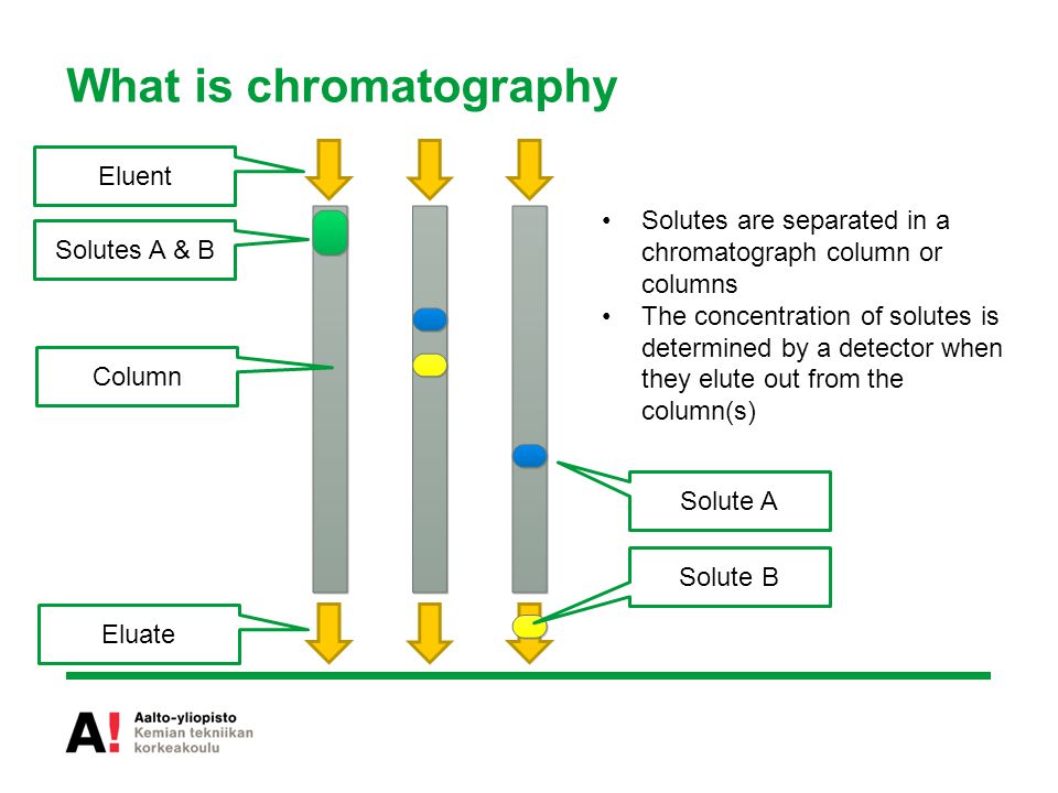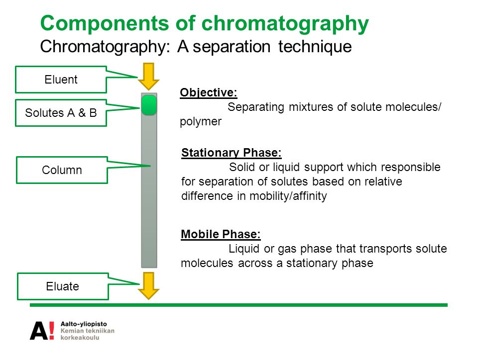 Generally speaking, chromatography is a technique that separates samples through two phases - the stationary phase (usually silica gel) and the mobile phase (usually the solvent). The stationary phase usually acts as the deterrent to the mobility of the samples, while the mobile phase is usually a gas or liquid solvent that contains the sample which passes through the stationary phase.Β